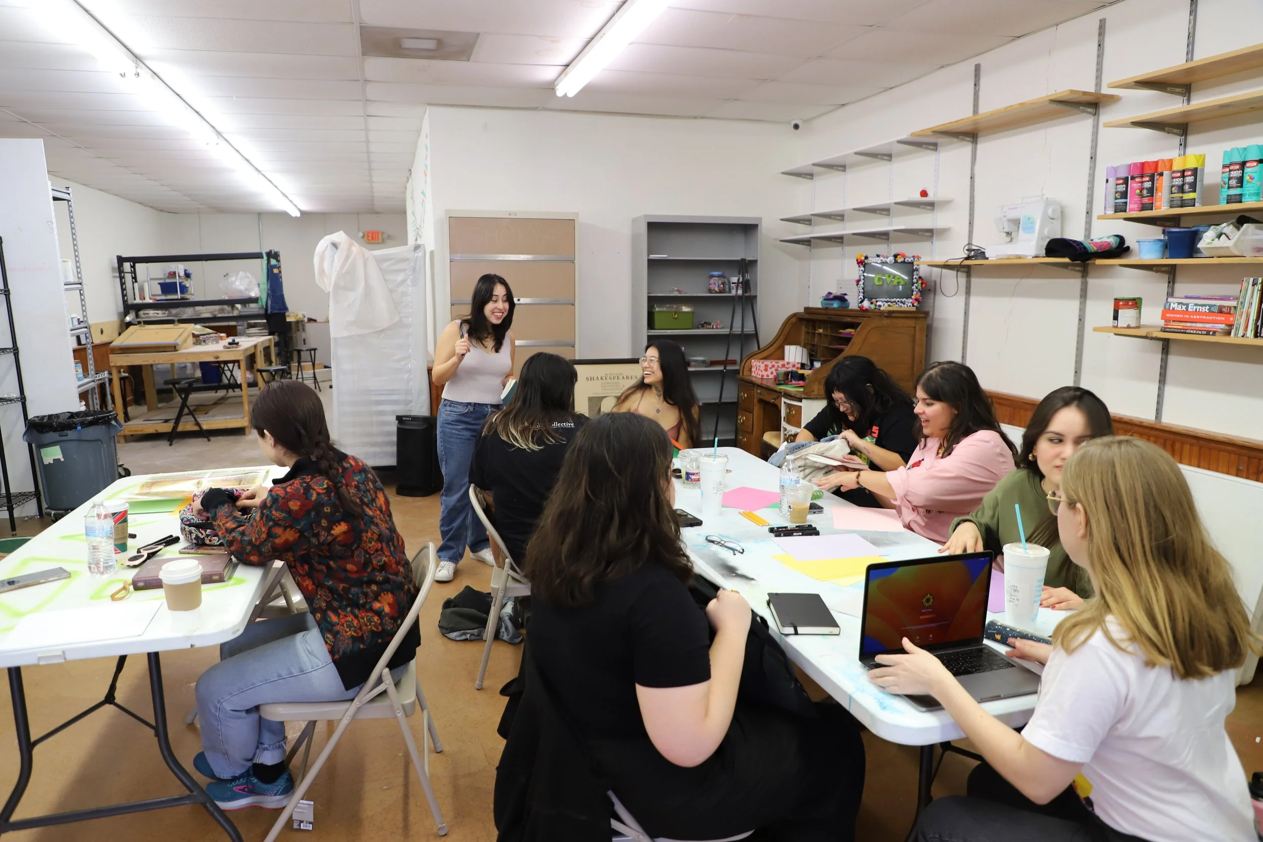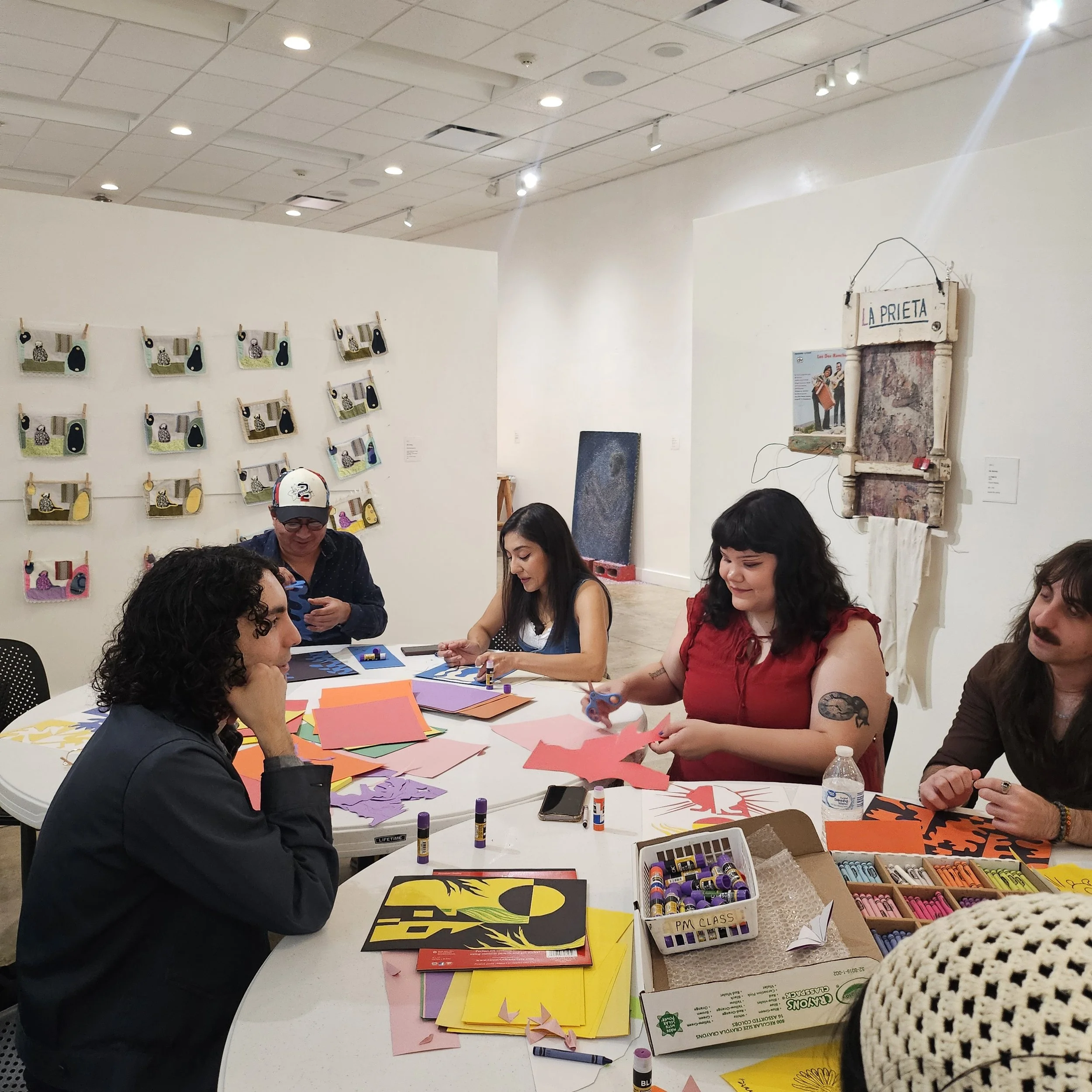 Community workshops at art exhibits with various themes, such as relief printmaking or collage.